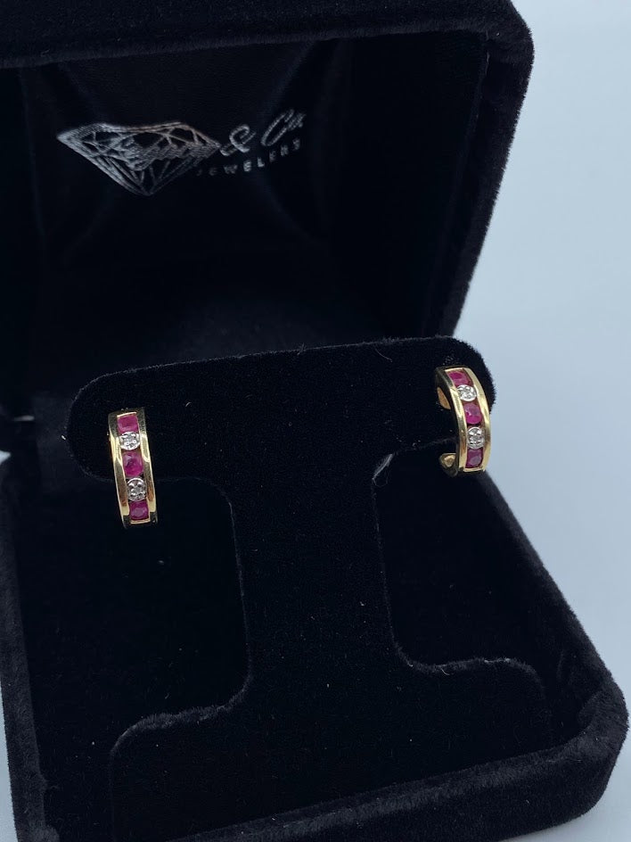 Ruby & Diamond Half Hoops
