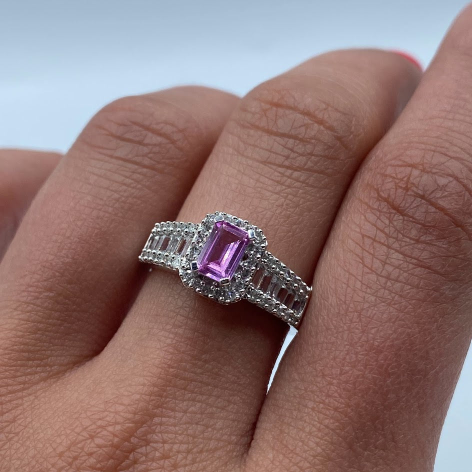 14K White Gold Pink and White Sapphire and Diamond Ring.